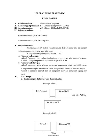 Dasar, (3) membuat format laporan sementara praktikum, (4). Jum at, 1 april 2016 iii. Setiap peserta wajib membuat laporan praktikum yang formatnya sudah ditentukan. Laporan akhir praktikum farmasi fisik. Bahan kimia yang mempunyai sifat mudah meledak, mudah terbakar, korosif,.